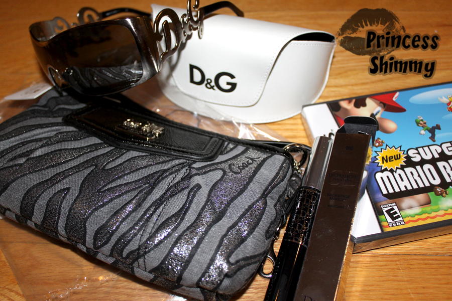 Dolce & Gabanna sunglasses, Coach wrislet, Diorshow mascara and Super Mario Bros for Nintendo DS.