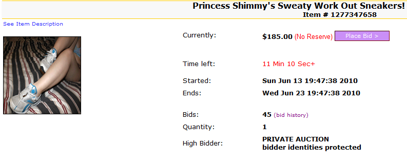 Speaking of auction photos, for those of you that are curious to know My recent Ebanned EasyTones sneaker auction ended at $185. Hahaha… that’s more than they are even worth. The thought of having My stinky sneakers that I’ve hiked in and wore without socks for months was too much for you footboys!