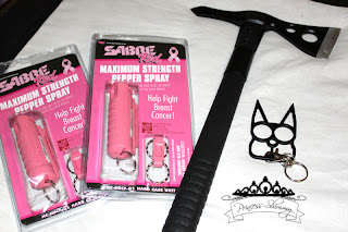 Two more pepper sprays (gifts for friends), a tomahawk… YES I said TOMAHAWK (don’t ask questions bitch!) and a self defense key chain.