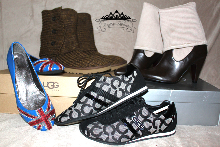 Union Jack “Spice Girls” flats, another pair of Uggs, Jessica Simpson boots and some Coach running shoes.