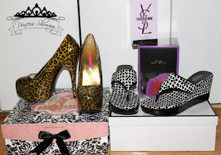 Pleaser Bordello pumps, Coach wedges, Marc Jacobs Lola and Yves St. Laurent Parisienne perfume.