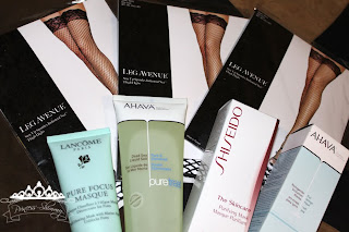 Fishnets, Lancome, AHAVA and Shiseido face masks.