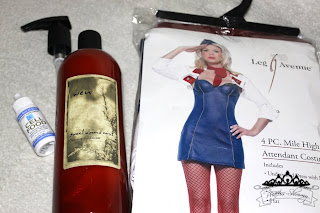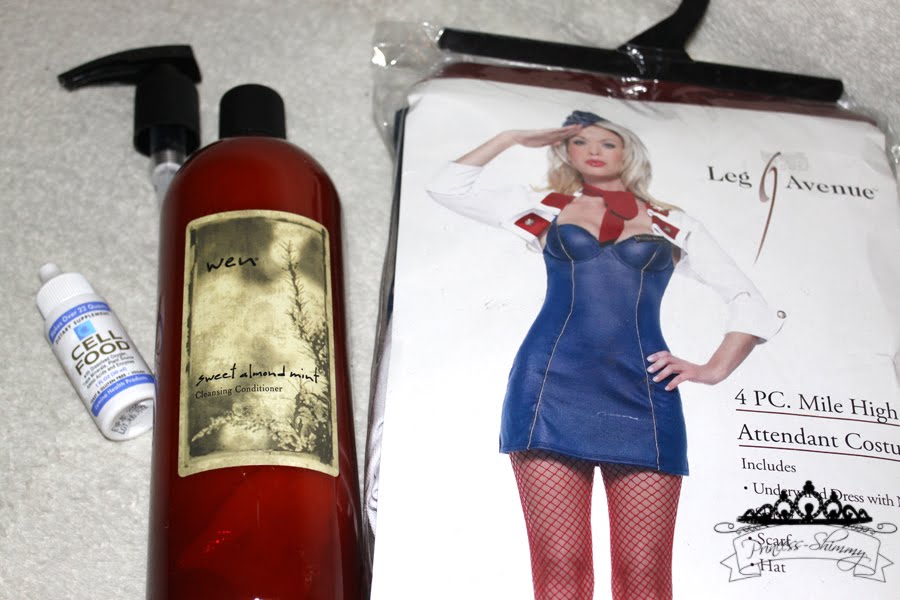 Left to right, Liquid Oxygen (this stuff is amazing and really works), a big ass bottle of My favorite conditioner “Wen” and a flight attendant costume.